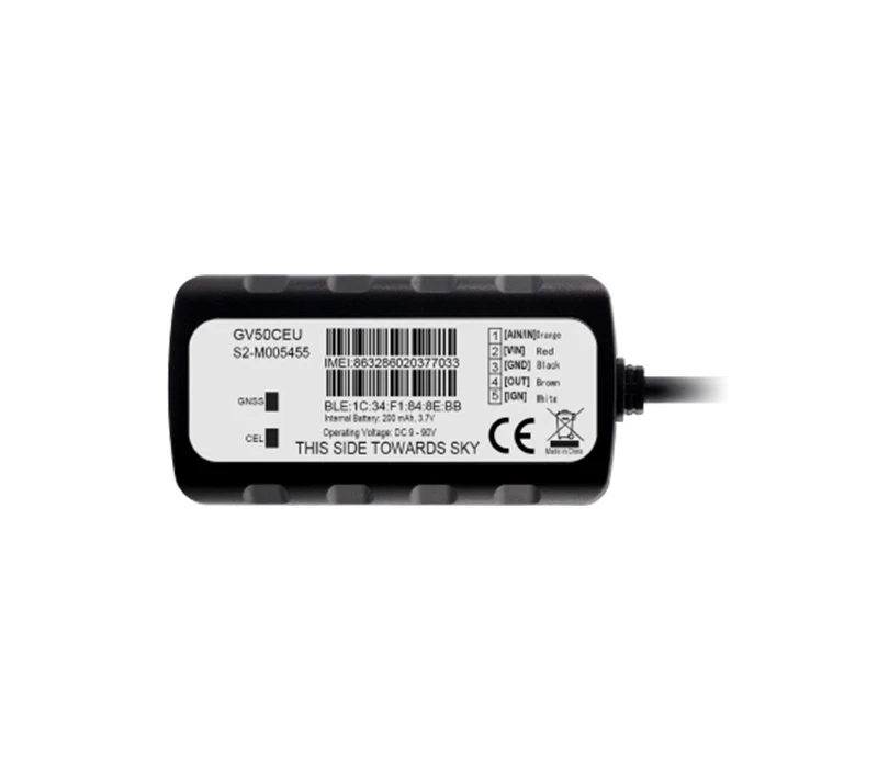 Le GV50CEU est un traceur GNSS / LTE Cat‑1 (repli 2G) doté d’un accéléromètre pour la télématique, du Bluetooth LE pour la connexion d’accessoires externes, et prenant en charge la commande OTA pour piloter les sorties numériques à distance.